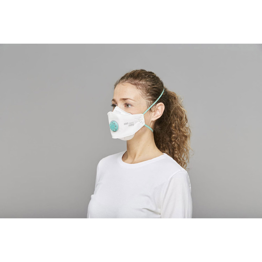 - Orrlemez: A szűrőanyag rétegei között elhelyezett orrlemez optimálisan alkalmazkodik az orr és a szemek profiljához, biztosítva a jó látási viszonyokat.