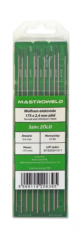 Zöld wolfram elektróda (W - WP) – „Tiszta wolfram”