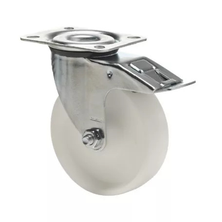 Kerék fehér poliamid,forgó-fékes 100 hátfuratos LER-PO 100G-FI