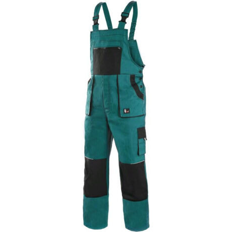 • Megerősített térd • Gumírozott derék • Első-, oldal-, és cipzáras mellzseb • Reflex kiegészítők • 100% pamut, 260 g/m2 • Elérhető hosszított (194 cm) változatban is zöld/fekete és kék/fekete • Elérhető rövidített (170-176 cm) változatban kék/fekete színben • EN ISO 13688