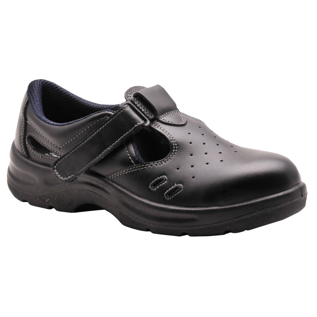 A Steelite szandál S1 alapanyaga hasított bőr felsőrész és PU/PU talp. Perforált felsőrésze, antisztatikus talpszerkezete, acél orrmerevítője és energiaelnyelő sarokkal rendelkezik.