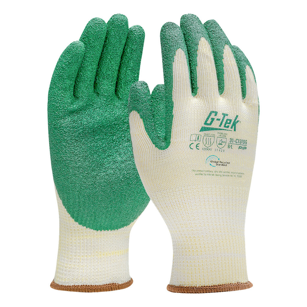 G-TEK újrahasznosított poliészter, latex tenyérmártott munkavédelmi kesztyű – bliszteres