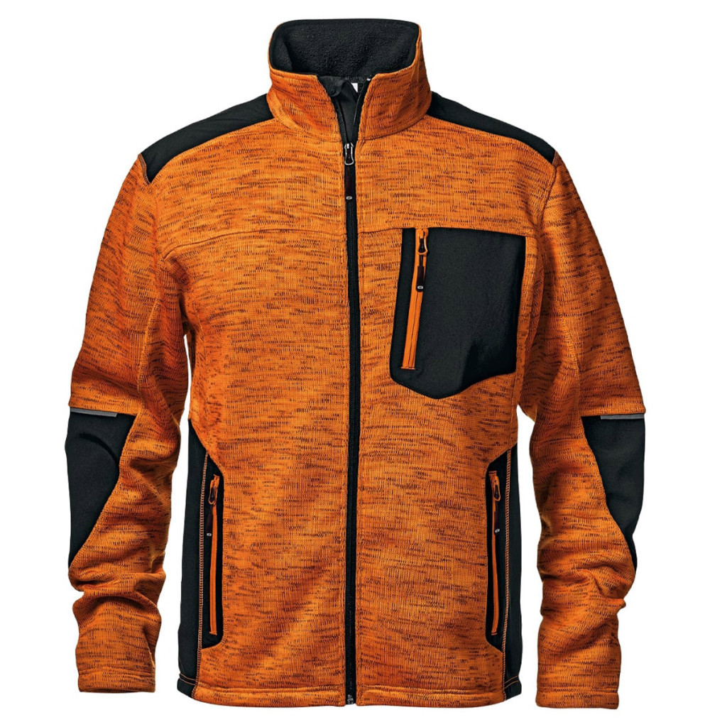 - Anyag: 100% poliészter, 350g/m2 melanzs fluoreszkáló narancssárga anyag. Betétek: Kék softshell betétek a vállon, könyökön és oldalsó részeken a fokozott tartósság és kényelem érdekében. Záródás: Cipzáras záródás a könnyű fel