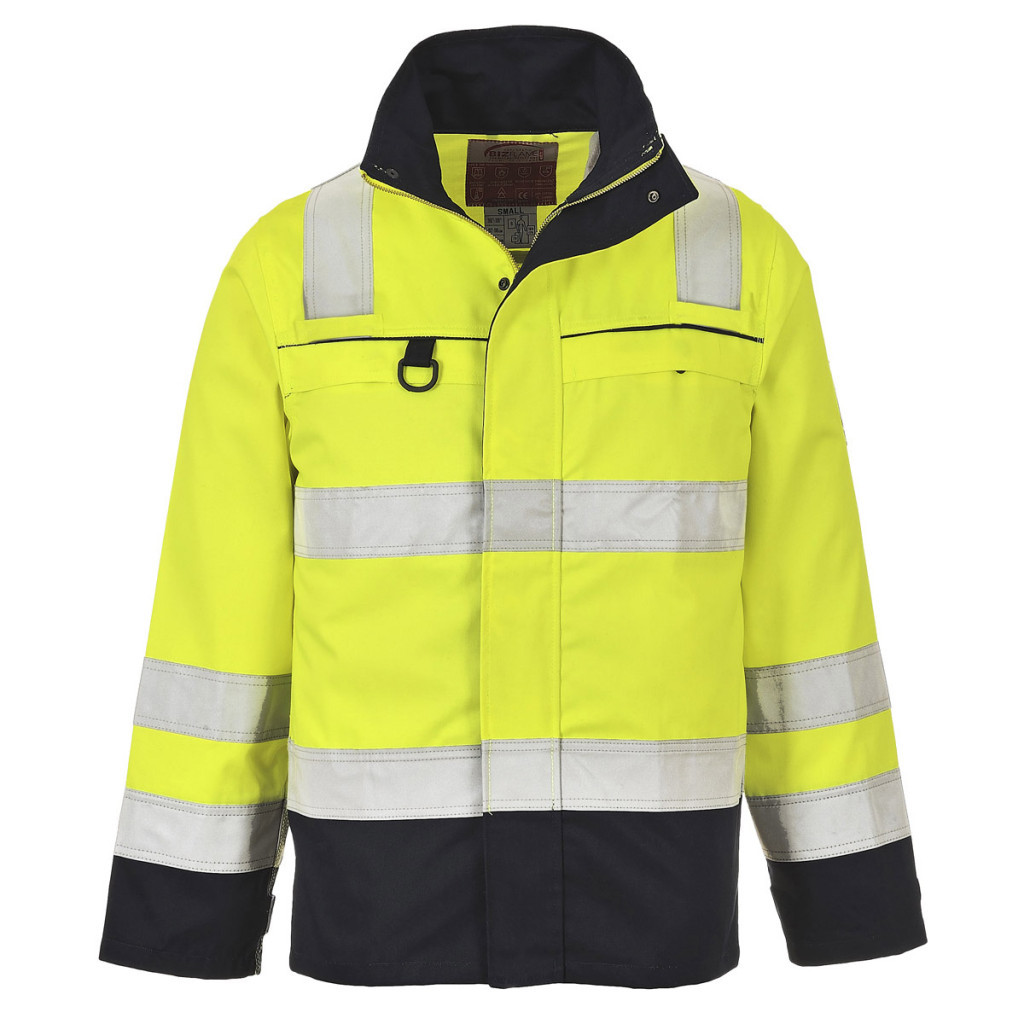 A Új 'multi-norm' kabát modellünk az FR60 típussal megegyező, innovatív, jól láthatósági, többszintű védelmet biztosító anyagból készül. Védelem hő, láng, vegyszerek, elektromos ív és hegesztési kockázatok ellen. Rejtett kétutas réz zipzárral és rejtett zsebekkel készül.