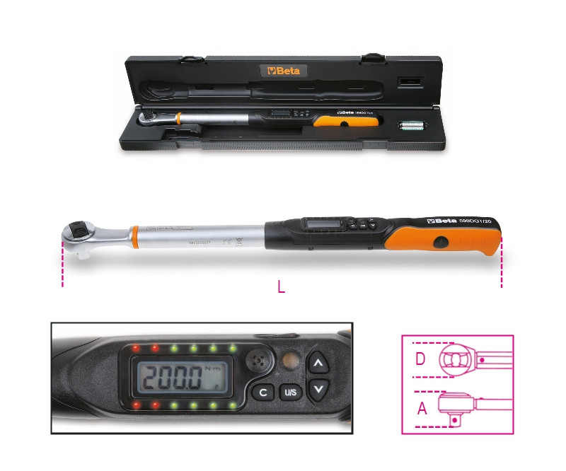 BETA nyomatékkulcs: 599DGT/10X elektronikus nyomatékkulcs irányváltós racsnival jobb és bal oldali meghúzáshoz meghúzási pontosság +/- 2% jobb irányban, ± 3% bal irányban 1/2" (BETA 599DGT/10X).