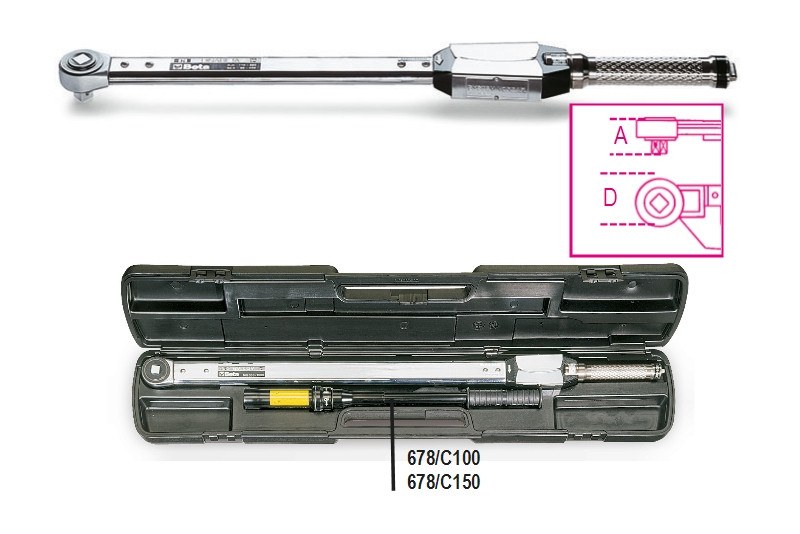 BETA nyomatékkulcs: 678/C100 kioldó nyomatékkulcs egyszerű racsnival jobb oldali és bal oldali meghúzásokhoz meghúzási pontosság ± 4% fémdobozban (BETA 678/C100).