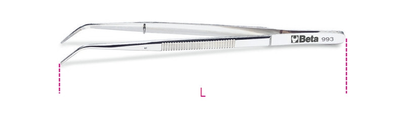 BETA forrasztástechnikai eszköz: 993 145 Hajlított végű csapos csipesz lekerekített fogazott heggyel, rozsdamentes acélból, polírozott (BETA 993).