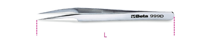 BETA 999D Hajlított csipesz, nem mágneses, saválló, tűhegyes, rozsdamentes acélból, polírozott (BETA 999D)