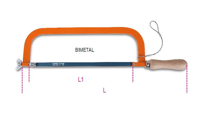 BETA fűrész: 1727HS Erősített fűrész, fűrészkeret lakkozott acélból, fanyéllel, bimetál fűrészlappal H-SAFE (BETA 1727HS).