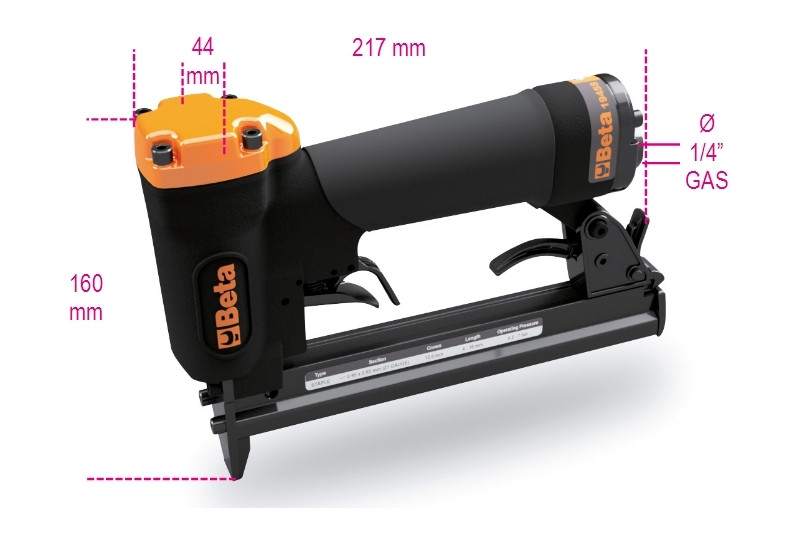 • Használt tűzőkapocs típus 80, keresztmetszet 0,95 x 0,65 mm (21 Gauge ), hosszúság 4 - 16 mm, szélesség 12,8 mm