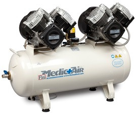 OLAJMENTES fogászati kompresszorok. A MedicAir gépek fogorvosok és fogászati laborok sűrített levegő ellátását biztosítják. A tartálybelső speciális korrózióálló festékkel van bevonva, így a kompresszor által termel sűrített levegő megfelel a felhasználási terület szigorú higiéniai követelményeinek. Jellemzők: -50 literes tartály belső korrózióálló felületkezeléssel - Olajmentes dugattyúk ellenőrzött alapanyagból, nagy teljesítményű hűtőventilátor és kényszerhűtés a maximális hűtési hatékonyság érdekében - Ki-be kapcsoló - Rezgéscsillapító gumibak - Levegő kimeneti szűrő - Dupla fogantyú segíti a mozgást - Motor hővédelem - Hangszigetelt, egyoszlopos szárítóval szerelt kivitel (FM) Dr. Sonic néven rendelhető