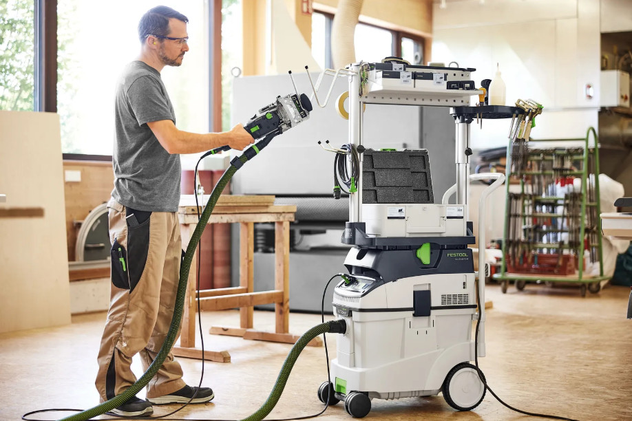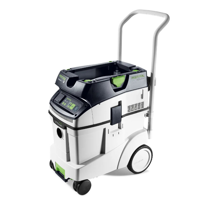 A CLEANTEC CTM 48 EI AC az elődjéhez képest hatékonyabb AUTOCLEAN főszűrő tisztítórendszerrel rendelkezik. Ez biztosítja az egyenletesen nagy elszívóteljesítményt, a hosszabb munkaintervallumokat és a szűrő hosszabb élettartamát kevesebb karbantartás mellett. Érintésvezérelt kezelőfelülettel az elszívó vezérléséhez. A beépített Bluetooth® interfésszel az elszívó automatikusan indítható Festool akkumulátoros szerszámmal vagy az opcionális távvezérléssel. Ha az elszívó a Festool alkalmazással is össze van kapcsolva, ott például a tisztítási időközöket is beállíthatja. A sima, antisztatikus elszívótömlő kényelmesen tárolható a beépített tömlőtartóban.