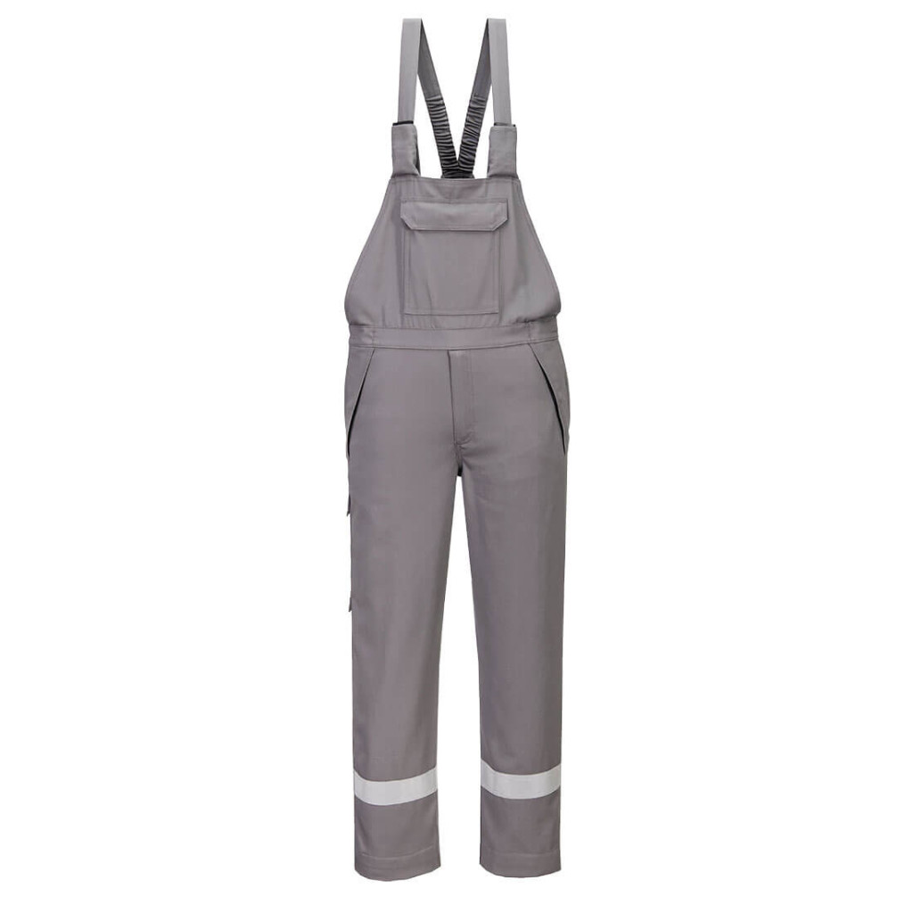 Ez az FR saválló kantáros nadrág az EN13034 szabvány szerint tanúsított és kiváló védelmet nyújt a vegyi anyagokkal szemben, valamint lángálló, antisztatikus, hegesztő és íválló védelmet biztosít. Kiváló pamut alapanyagból készült, amely rendkívül tartós. Jellemzői közé tartozik a biztonságos fémmentes patentos és cipzáras elülső rész. Párosítható az FR609 kabáttal.