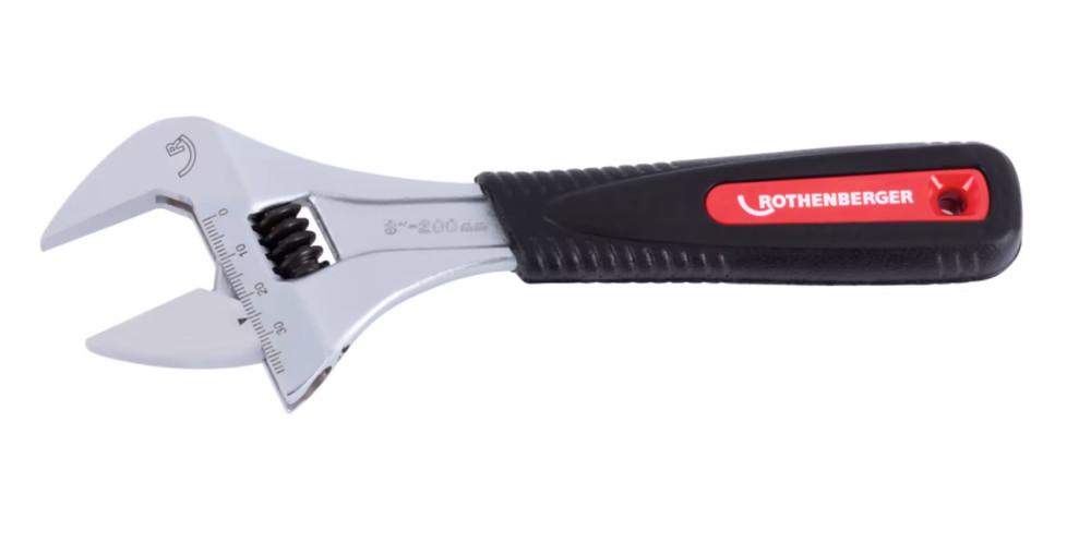 ROTHENBERGER szerelőkulcs: Állítható villáskulcs 8" (L216) gumírozott nyéllel 0-39mm-ig.