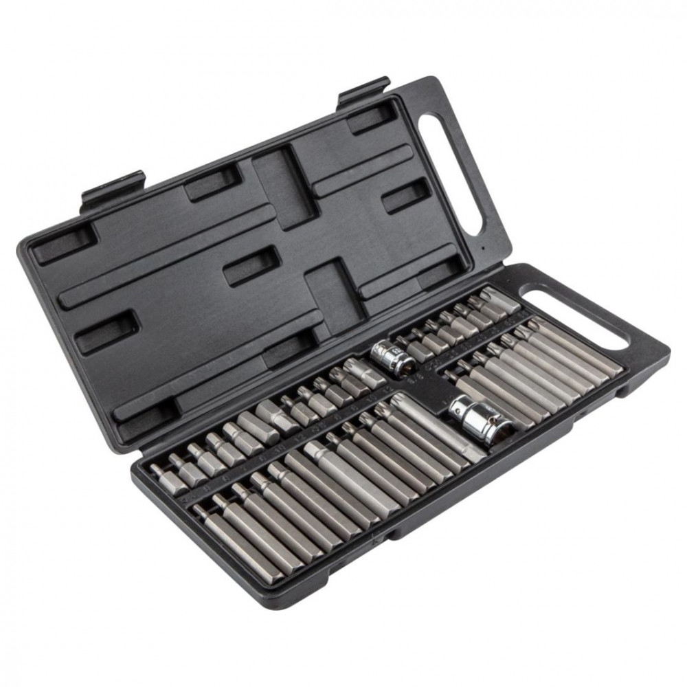 Spline csavarhúzó bit klt., 40 db‑os, ½” adapter, 3/8” adapter, 30 mm‑es csavarhúzó bit, méretek: T20, T25, T30, T40, T45, T50,HEX 4, 5, 6, 7, 8, 10, 12, Spline 5, 6, 7, 8, 10, 12, bit 75 mm-es, méretek: T20, T25, T30, T40, T45, T50, T55, HEX 4, 5, 6, 7, 8, 10, 12, Spline 5, 6, 7, 8, 10, 12
