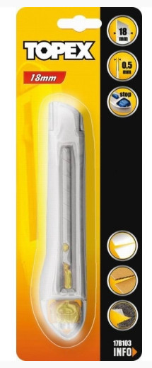 TOPEX vágószerszám: dekorkés fémházas tekerős 18mm.