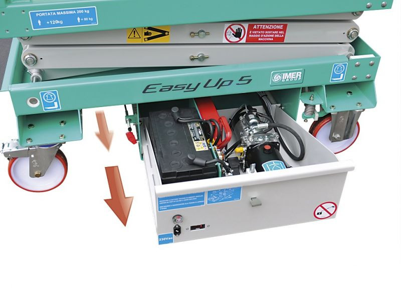 Az IMER ollós típusú önjáró emelői vízszintes és függőleges síkban is elképesztően jól manőverezhetők. A motor lehet elektromos vagy dízelüzemű. Az ügyfél az 5 m és 10 m közötti munkamagassággal rendelkező méretek széles választékát élvezheti.