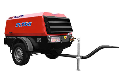 MDVN 31K Zajmentesített motoros kompresszor, egy tengelyen és rögzített vonórúddal, fékek és lámpák nélkül
