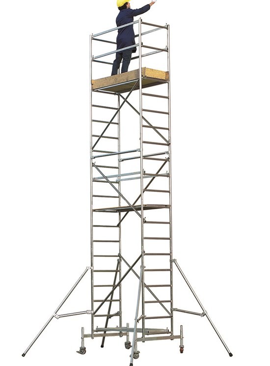 Nagyon könnyű és ellenálló, alumíniumból készült tartószerkezetből és fa platformból áll. Minden egyes munkaállvány csapóajtóval van ellátva, hogy közvetlenül a torony belső részéből könnyen hozzáférhessen, valamint 4 lábtámlával, hogy megakadályozza a szerszámok leesésének veszélyét. Az emelvényt egy szélrögzítő kapcs rögzíti a teljes szerkezethez.